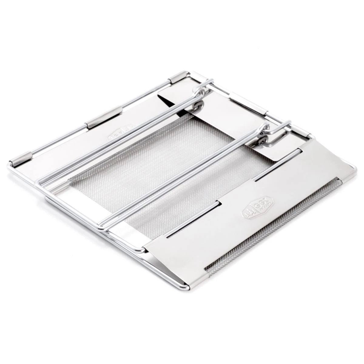 The GSI Glacier Stainless Toaster features a fine mesh that distributes heat while securing toast and reducing overall weight.