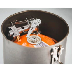 Dual, locking, stainless steel bail handles make for easy handling of the 2 Liter pot. Integrated straining holes in the lightweight, aluminum lid make straining water simple while the silicone thumb pads insulate hands from the heat. Spiral-turned base grips stoves and grills securely. Includes Mesh stuff sack. Halulite says goodbye to scratches, burn circles and ounces. As light as Titanium, Halulite is a proprietary alloy that also conducts heat better and more evenly—so you can leave the extra fuel at home. Plus, every piece is Hard Anodized to create a surface that withstands scratches and abrasions like nothing else. It’s ultra light without the sacrifices. Now that’s smart.