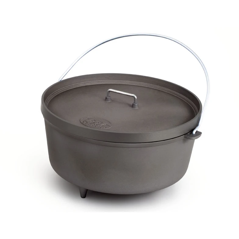 Food just tastes better made over an open fire, but cooking it can be messy. This Dutch oven’s non-porous anodized surface means food won’t stick and the pot cleans up beautifully after you’re done. Best of all, there’s no need for time-consuming pre-seasoning. Dutch ovens cook with radiant heat, so they work best with charcoal or coals underneath as well as heaped on the lid. (They cook beautifully in your oven at home, too.) This lid has a lipped edge to hold coals in a ring.